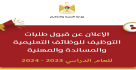 أعلنت وزارة التربية والتعليم العالي بدء استقبال طلبات التوظيف للوظائف التعليمية والمساندة والمهنية للعام الدراسي 2027/2026، اعتبارا من يوم السبت 17/01/2026 ولغاية يوم السبت 31/01/2026.